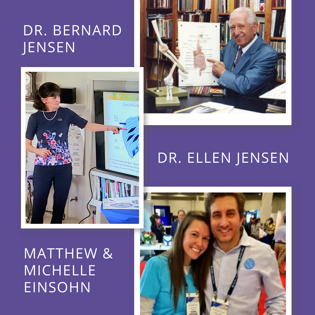 Today, that legacy continues through the next generation. Matthew and Michelle Einsohn have been trained and mentored directly under Ellen, helping extend the Jensen/Tart-Jensen approach with integrity and consistency. Matthew is an IIPA-Certified Iridologist with certification through Bernard Jensen International, and Michelle is a certified iridologist and traditional naturopath mentored by Ellen to support the continuation of the Bernard Jensen lineage.